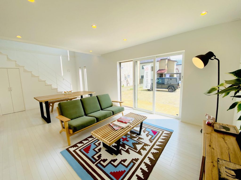 真っ白な壁紙と、ナチュラルな木の床やインテリアなどがほっこりと落ち着く家。全体的に明るくて、開放的な雰囲気です。